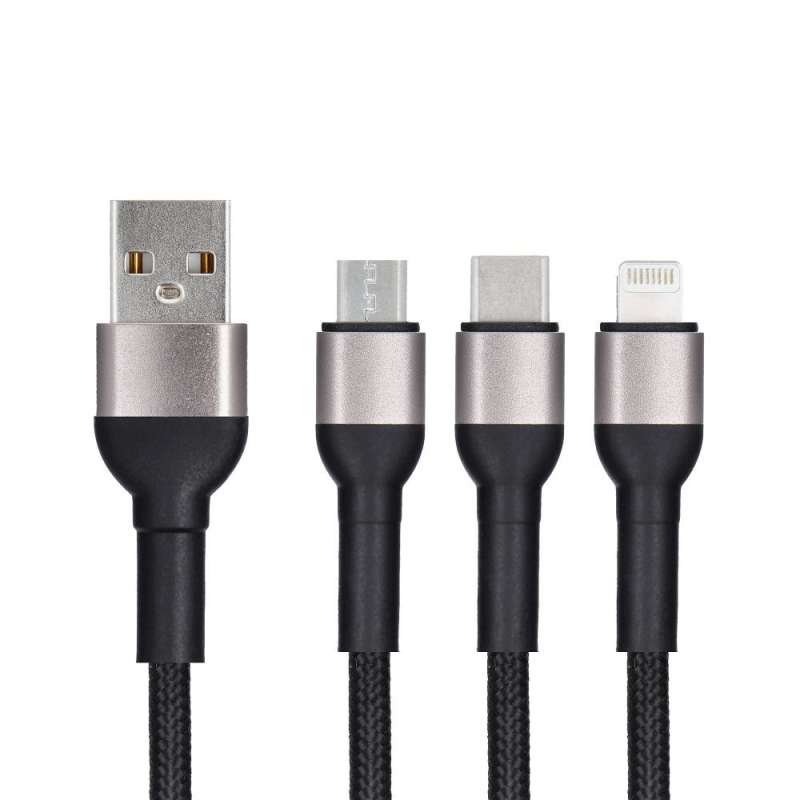 Απόλαυσε άνεση με το Blue Star TFK-DC-010, ένα καλώδιο 3 σε 1 για Lightning, Micro USB και Type-C. Ιδανικό για γρήγορη φόρτιση 2.4A, μήκους 1.2m, σε κομψό μαύρο χρώμα.