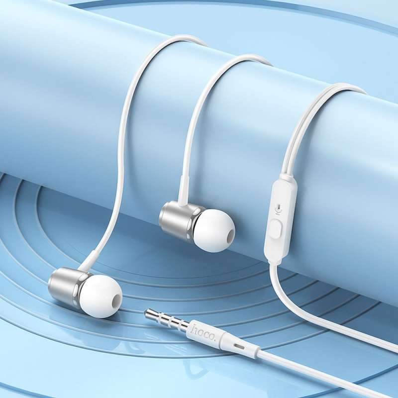 Hoco M108 - Ενσύρματα In-Ear Ακουστικά με Καρφί 3.5mm και Μικρόφωνο σε Ασημί Xρώμα