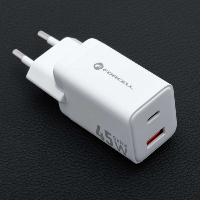 Forcell F-Energy Mini VT-36 - Φορτιστής με Υποδοχές 1 x Type-C και 1x USB-A QC 4.0 45W σε Άσπρο Xρώμα