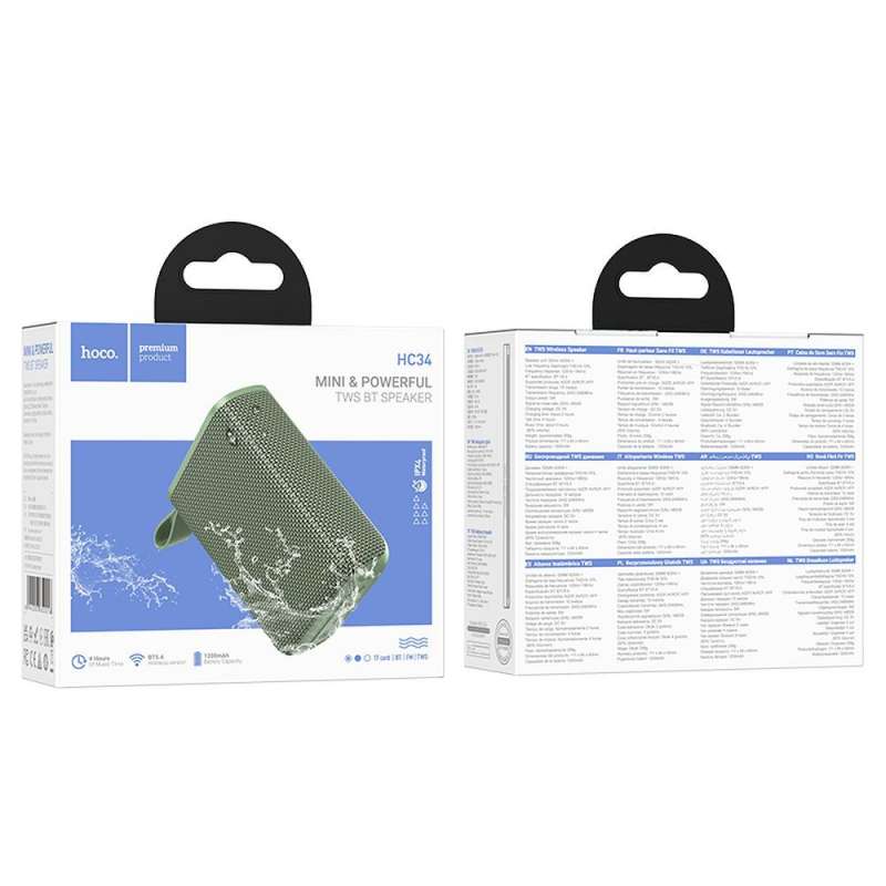 Απόλαυσε την αγαπημένη σου μουσική με το Hoco HC34 - Ηχείο Bluetooth 5W σε πράσινο χρώμα. Με ισχύ 1200mAh, προσφέρει εξαιρετική αυτονομία και φορητότητα, ιδανική για κάθε περίσταση.