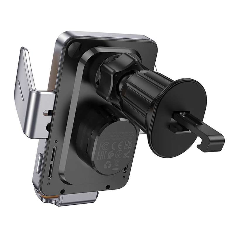Hoco HW7 - Βάση Κινητού για Αεραγωγό Αυτοκινήτου με Υποστήριξη Ασύρματης Φόρτισης 15W σε Γκρι Xρώμα