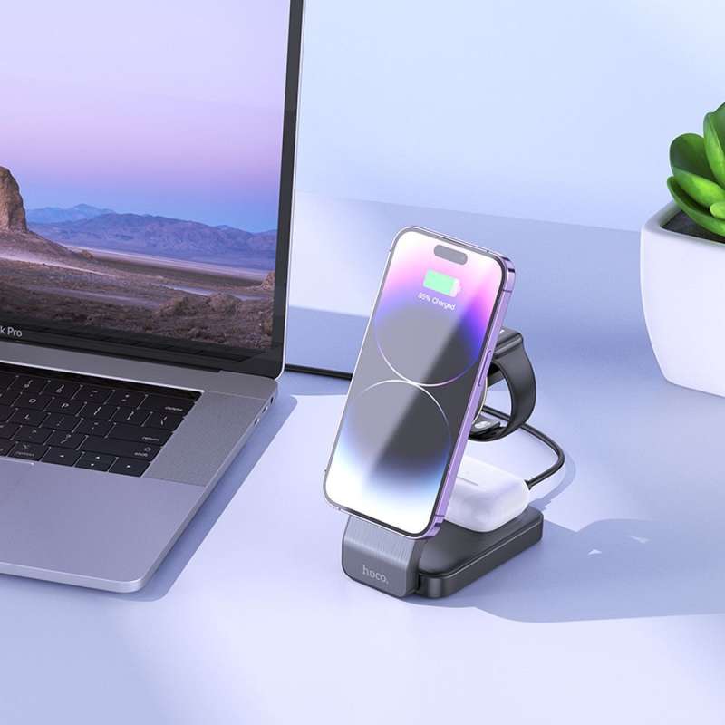 Hoco CQ3 - Ασύρματος Φορτιστής 3 σε 1 με Υποστήριξη MagSafe 15W σε Μαύρο Χρώμα | SPOTT.GR