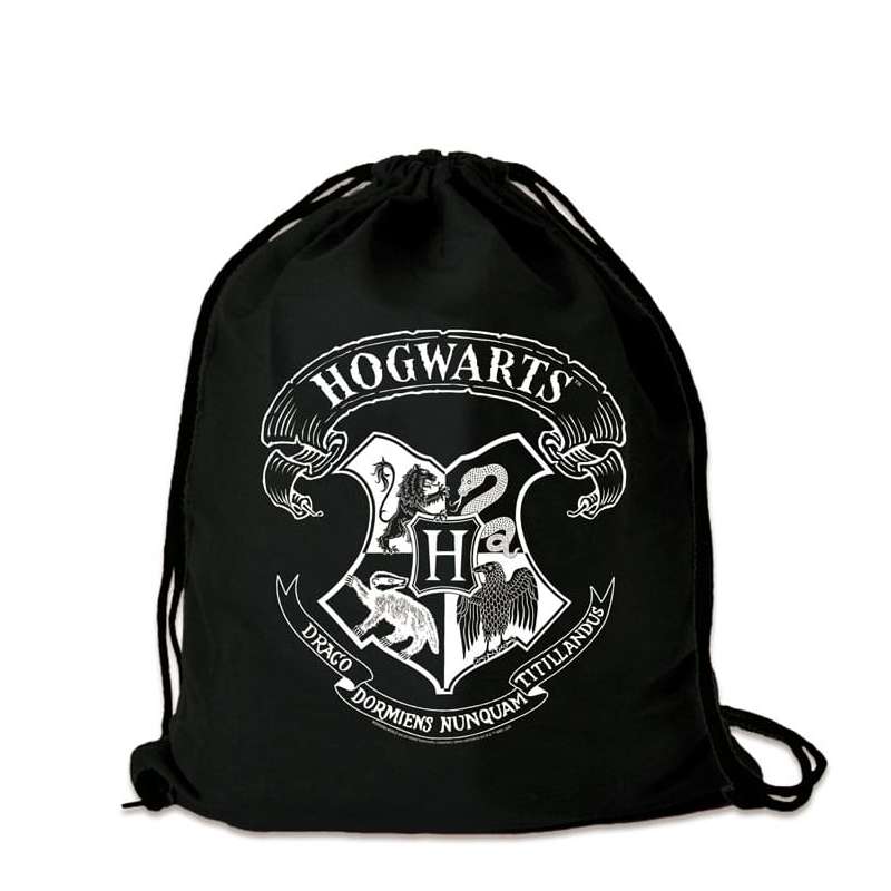 Harry Potter - Τσάντα Γυμναστηρίου Hogwarts σε Μαύρο Χρώμα (Άσπρο Λογότυπο)