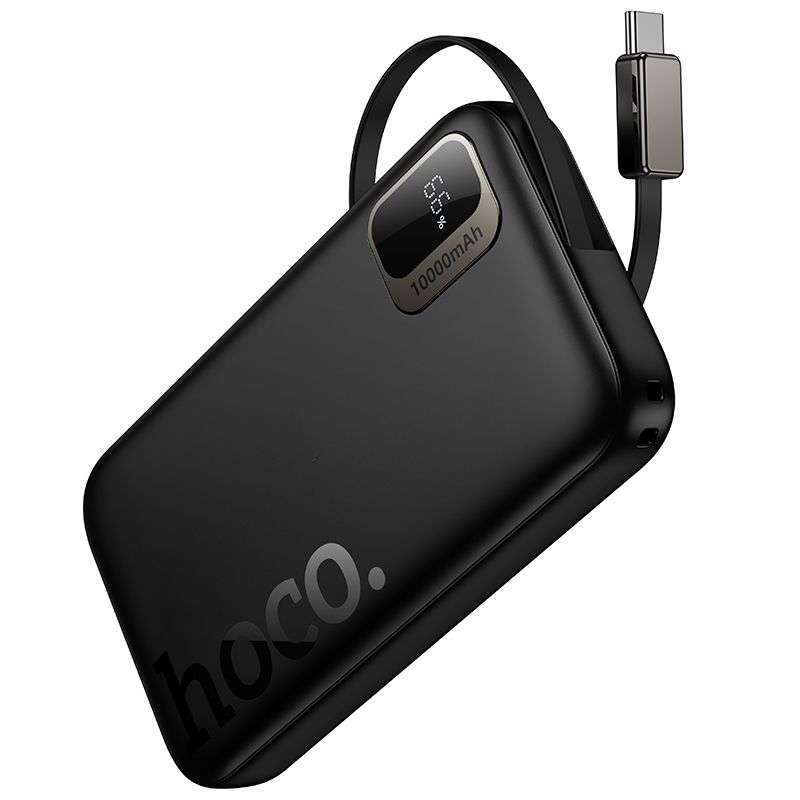 Hoco Q51 - Power Bank 10000mAh (QC PD) 20W με Ενσωματωμένο Καλώδιο Type-C σε Μαύρο Χρώμα | SPOTT.GR