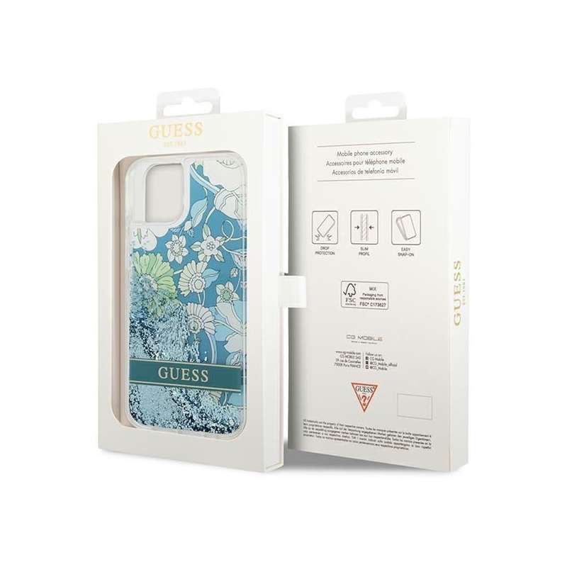 GUESS - Θήκη για Apple iPhone 13 / 14 / 15 (Flower Liquid Glitter) σε Πράσινο Xρώμα | SPOTT.GR