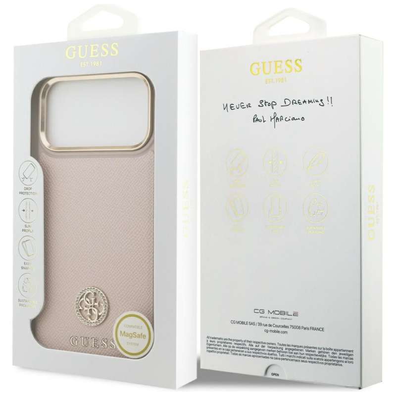 GUESS - Θήκη για Apple iPhone 17 Pro Max με Υποστήριξη MagSafe (PU W/ Grained Strass Logo) σε Ροζ Xρώμα | SPOTT.GR