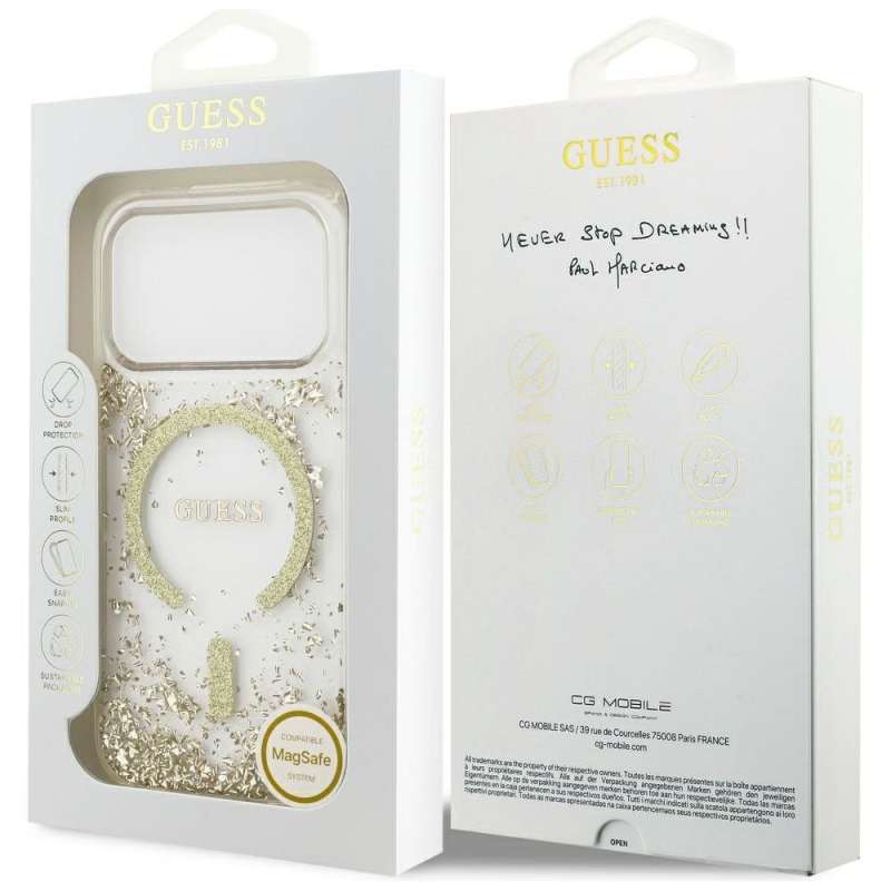 GUESS - Θήκη για Apple iPhone 17 Pro με Υποστήριξη MagSafe (Resin Bottom Glitter) σε Χρυσό Χρώμα | SPOTT.GR