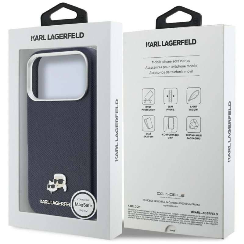 Karl Lagerfeld - Θήκη για Apple iPhone 17 Pro με Υποστήριξη MagSafe (PU FW W/ K&C Head Pin) σε Μπλε Χρώμα | SPOTT.GR