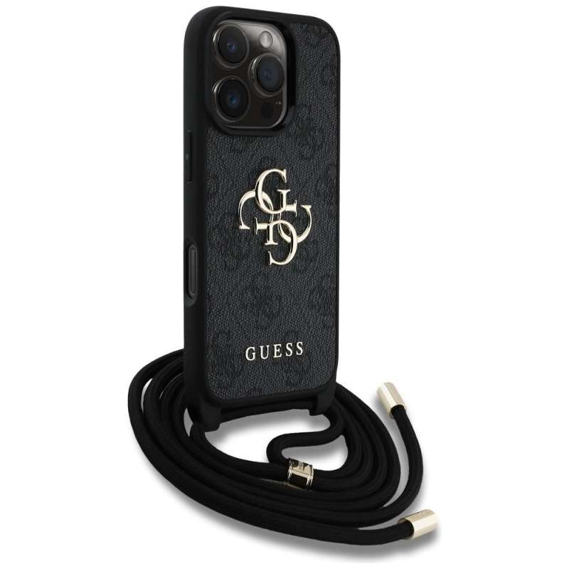 GUESS - Θήκη για Apple iPhone 16 Pro (CBDY PU 4G Big Logo W/Cord Strap) σε Μαύρο Χρώμα | SPOTT.GR