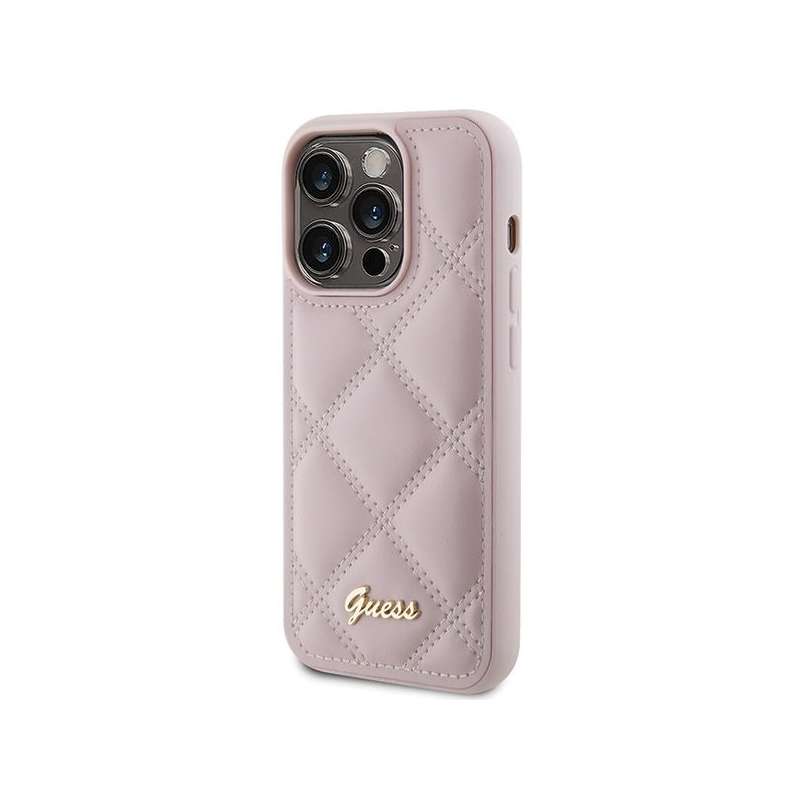 GUESS - Θήκη για Apple iPhone 15 Pro GUHCP15LPSQSQSP (Quilted Metal Logo) σε Ροζ Xρώμα | SPOTT.GR