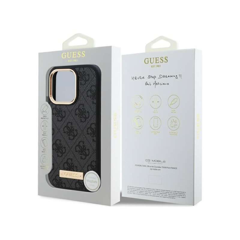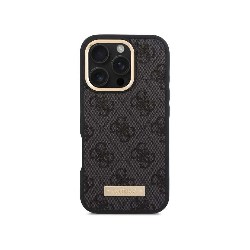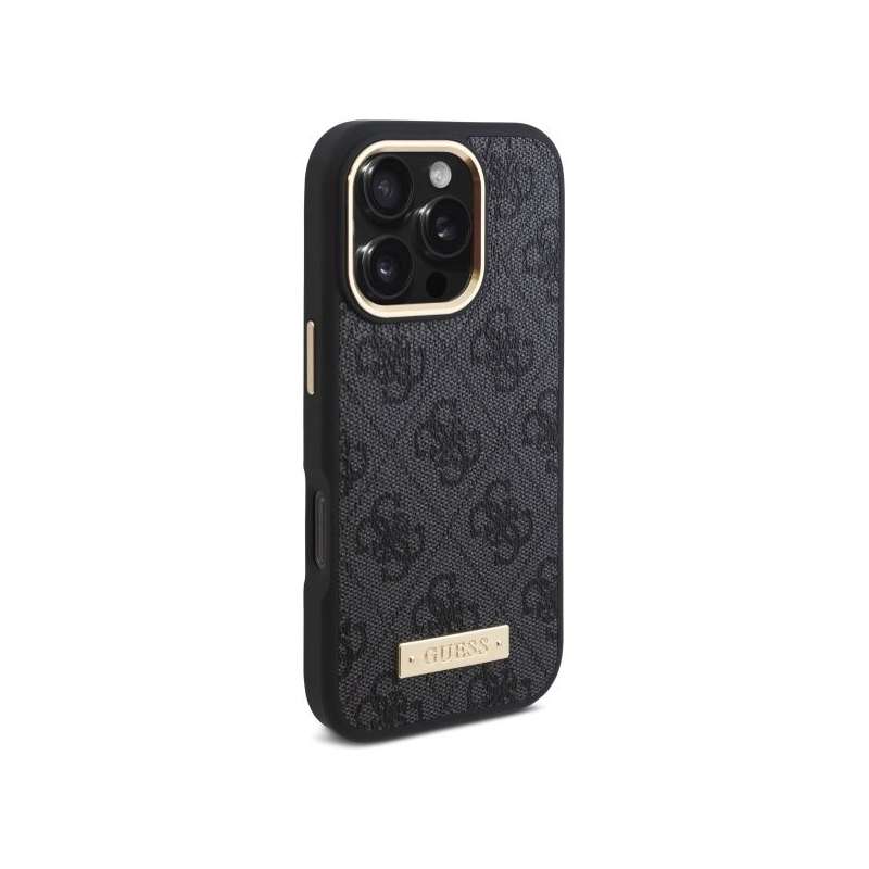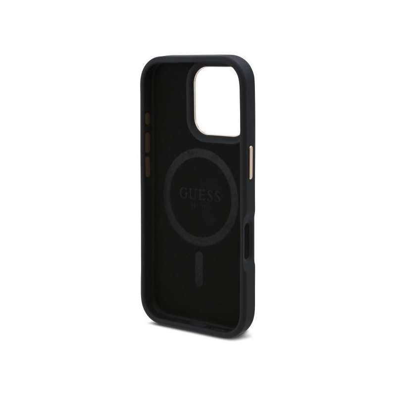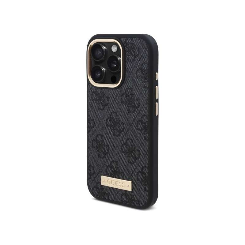 GUESS - Θήκη για Apple iPhone 16 Pro Max με Υποστήριξη MagSafe (PU 4G Logo Plate) σε Μαύρο Χρώμα | SPOTT.GR