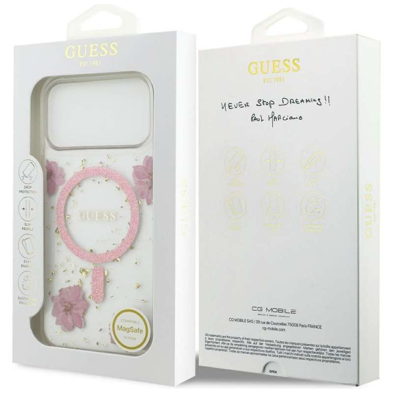 GUESS - Θήκη για Apple iPhone 17 Pro Max με Υποστήριξη MagSafe (Resin Flowers and Glitter) σε Ροζ Xρώμα | SPOTT.GR