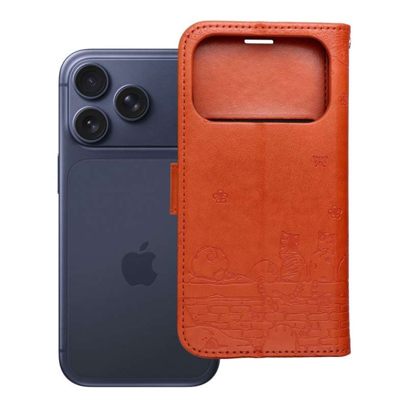 Mezzo Book Case - Θήκη Πορτοφόλι για Apple iPhone 17 Pro Max (Cats Design) σε Καφέ Χρώμα | SPOTT.GR